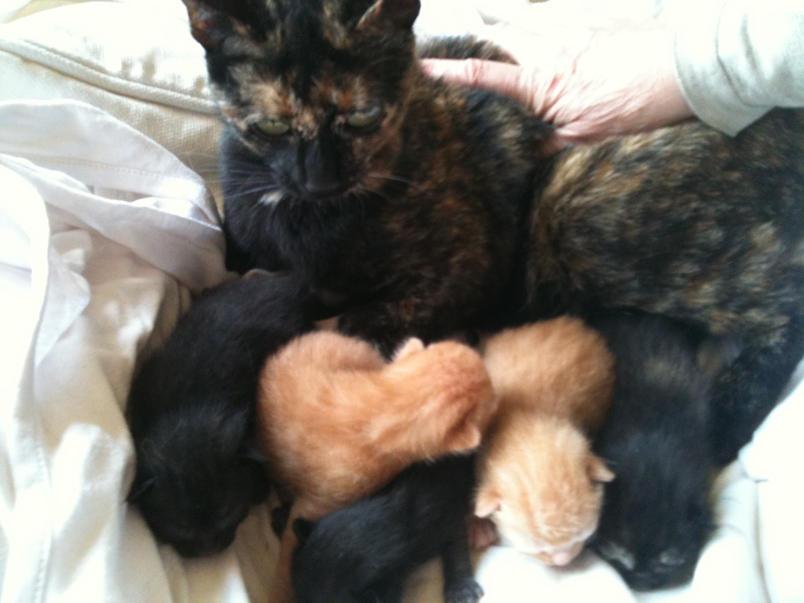 Hará sólo un par de semanas tuvo 3 gatitos pequeñitos tigrados en color negro i gris. Estos quisiera darlos en adopción al igual que la madre que es muy cariñosa. Los gatitos tienen 1 semana.